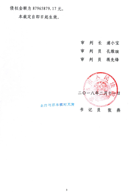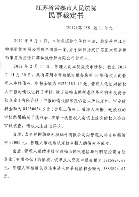 | 江苏省常熟市人民法院民事裁定书---(2017)苏0581破11号之二 |